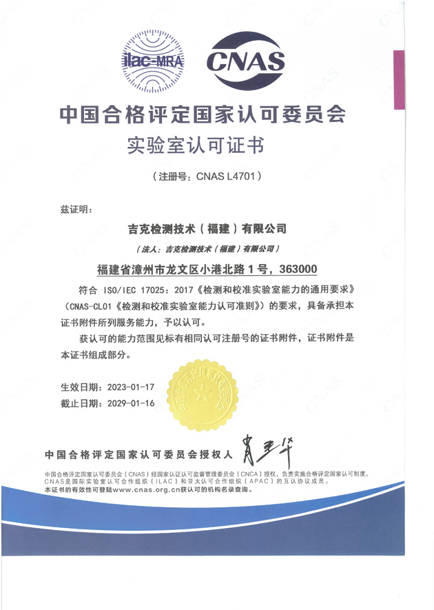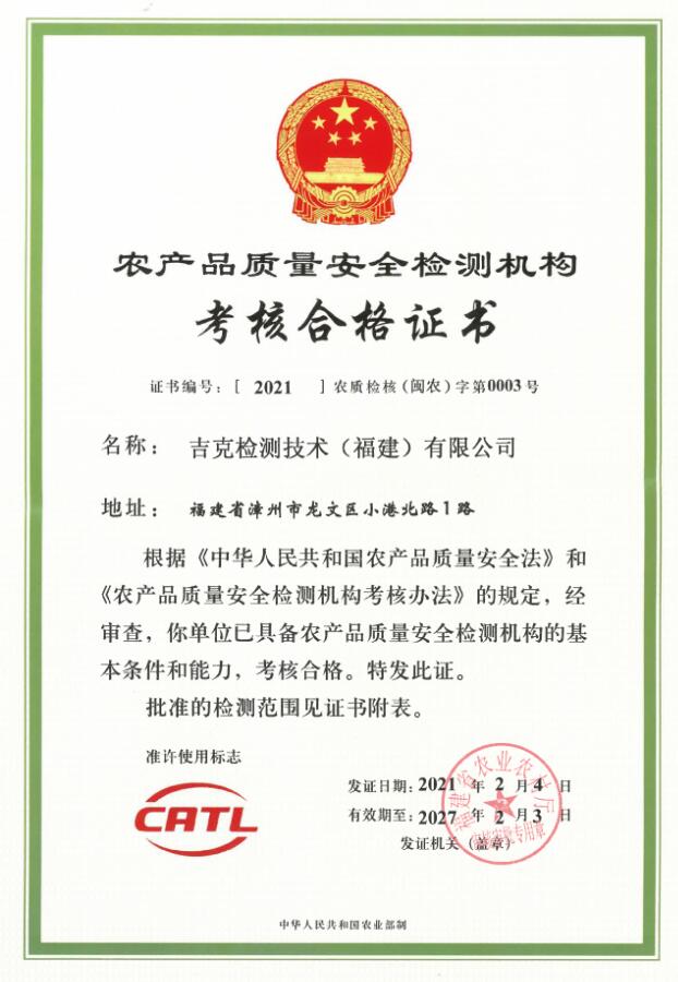 吉克檢測技術(福建)有限公司,位于福建省漳州市龍文區(qū)小港北路1號,于2019年8月注冊成立,是一家獨立的第三方檢測公司。公司已經(jīng)通過檢驗檢測機構計量認證(CMA)、農產(chǎn)品質量安全檢測機構資質認證(CATL),獲得中國合格評定國家認可委員會(CNAS)認可。公司本著“嚴謹、規(guī)范、高效、協(xié)作”的原則和對客戶及社會高度負責的精神,充分利用本公司優(yōu)質的檢測環(huán)境、先進的檢測設備和專業(yè)的技術人員,第一時間為客戶提供科學、公正、準確的檢驗檢測報告。 公司實驗室面積1100多平方米,儀器設備兩百多臺(套),固定資產(chǎn)一千多萬元,在職員工31人,技術人員中的中高級職稱及同等能力人數(shù)占60%以上。我們的服...